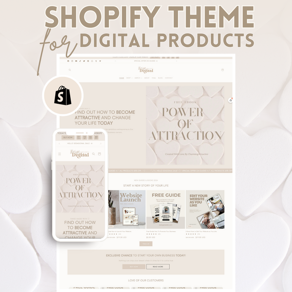 Beige & Blush Shopify Theme for Selling Digital Products, Template Online Store, Ecommerce Business MRR Website, Customizable Canva Banners