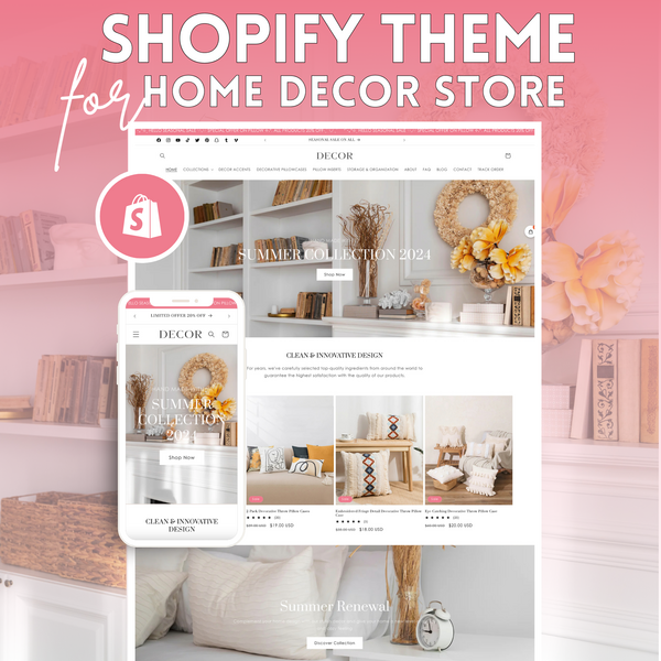 Pink Feminine Shopify Furniture Theme, Clean Store Home Decor Shopify 2.0, Shopify Home Decor Stores, Home Decor Shopify, Home Decor Theme