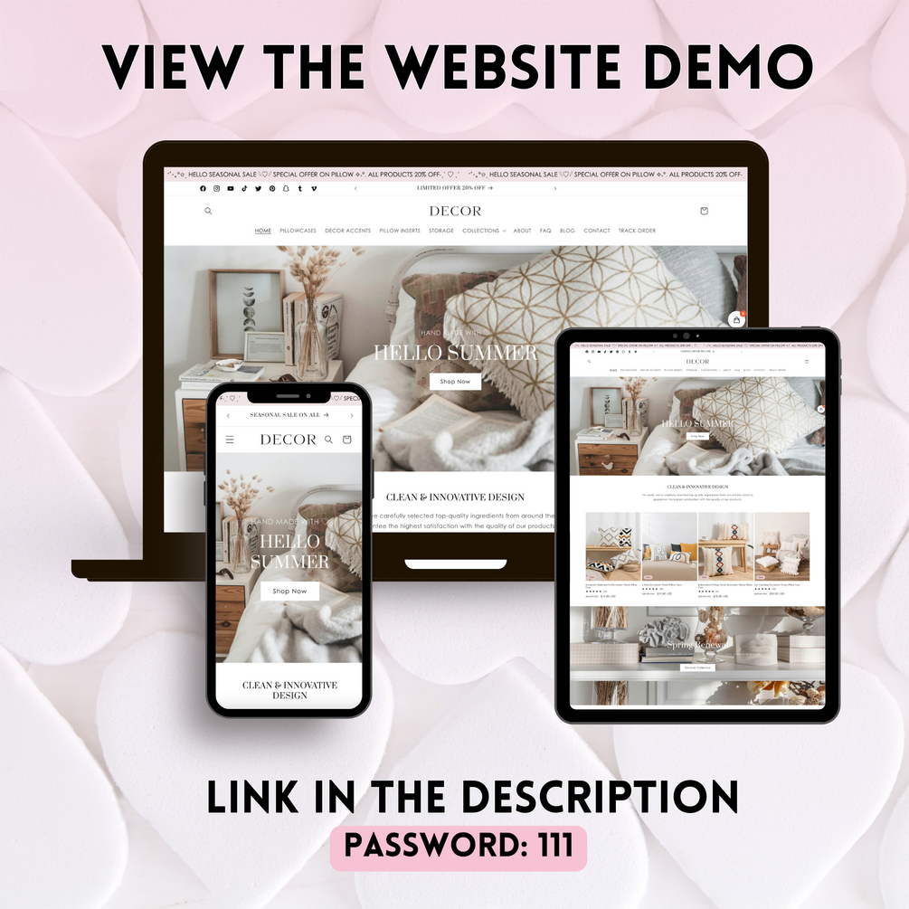 ★ Demo: https://pink-decor-password-111.myshopify.com/ ★ Password: 111 ★ FREE INSTALLATION WITHIN 24 HOURS INCLUDED ♡